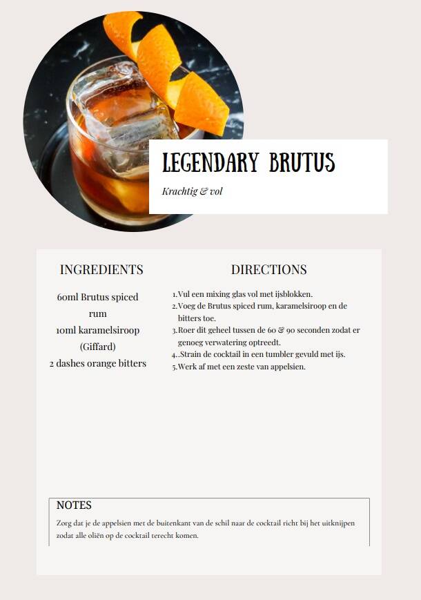 Hier vind je de recepten voor onze cocktails op basis van Brutus rum.